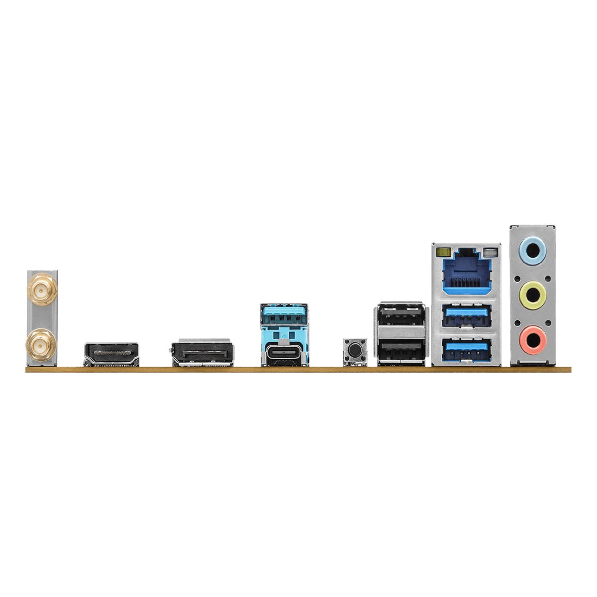 Panel trasero E/S | 2 x Puertos de antena, 1 x HDMI, 1 x DisplayPort 1.4, 4 x USB 3.2 Gen1 Tipo A, 1 x USB 3.2 Gen1 Tipo C, 2 x USB 2.0, 1 x Puerto LAN RJ-45, 3 x Jacks de audio. |