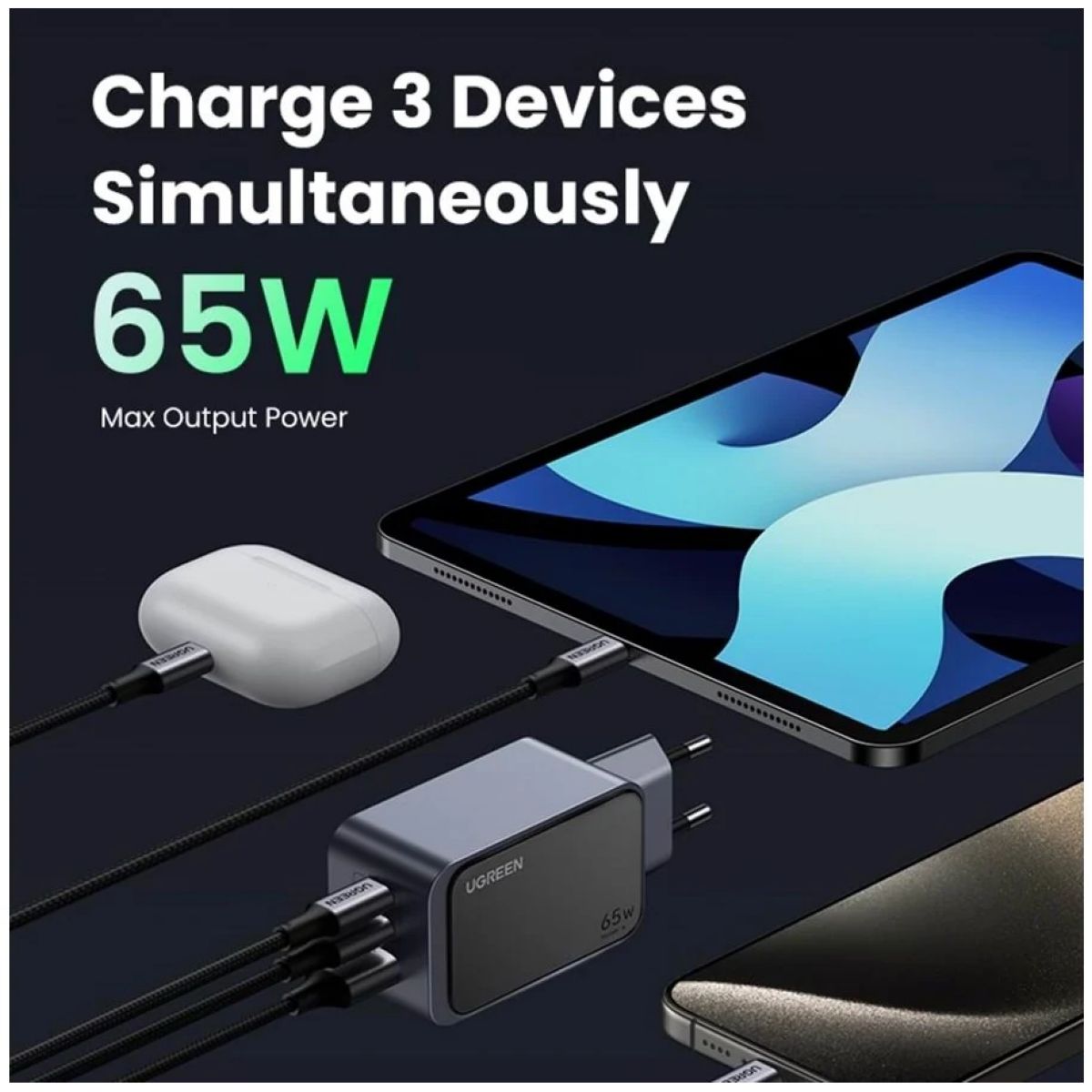 | Potencia | 65W con chip GaNInfinity |