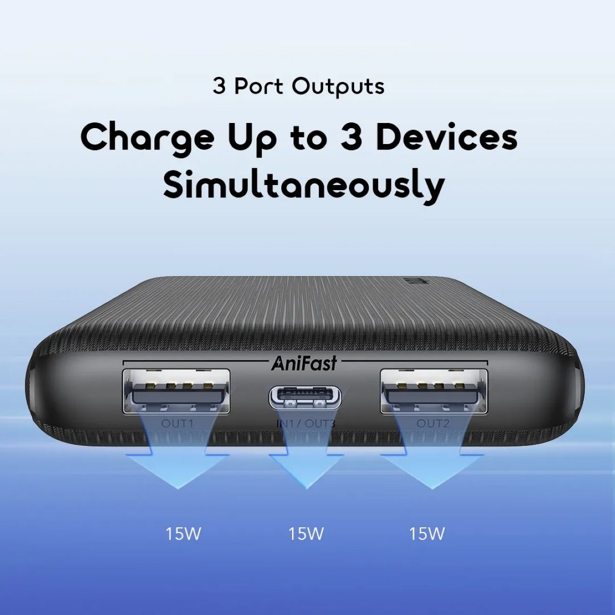 Su diseño ultra delgado y liviano facilita su transporte, mientras que la tecnología AniFast™ ajusta automáticamente la velocidad de carga según el dispositivo, garantizando eficiencia y seguridad en cada uso.